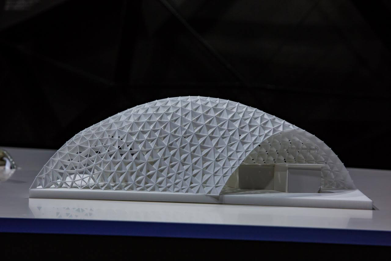 当初のデザイン案は模型として展示しており、今後は自立した構造体を展示するべく、課題として取り組みを続けています。