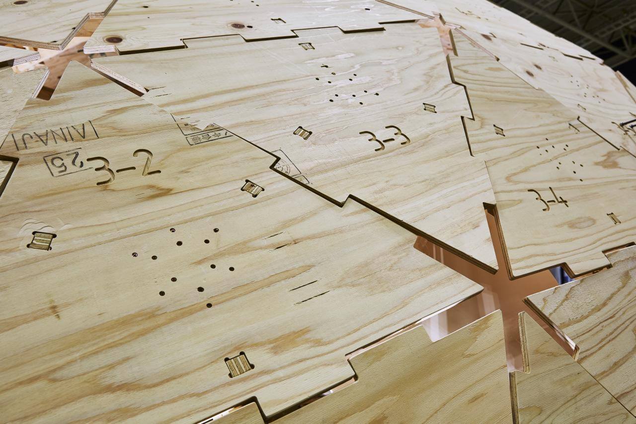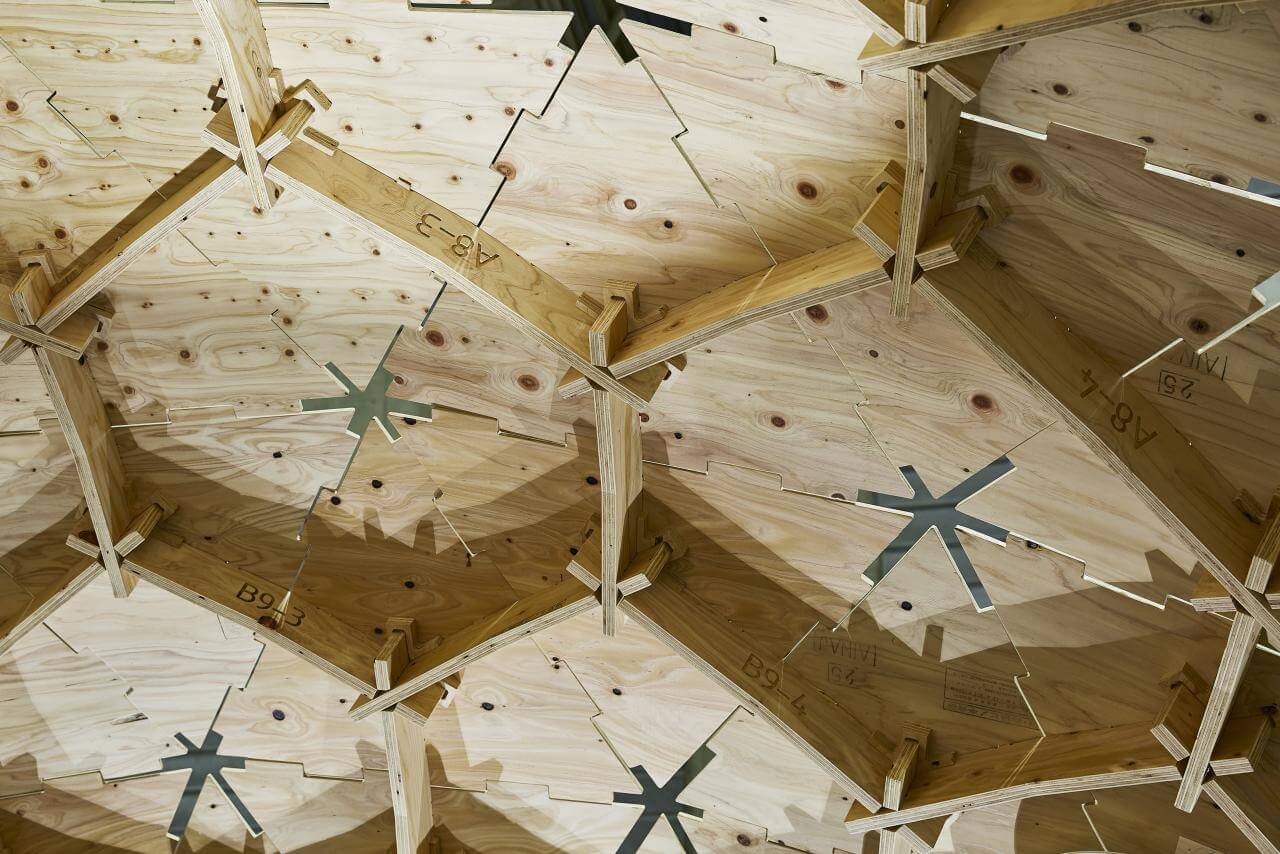 従来実現の難しかった、大規模な自立式の木質空間のデザインをシェル構造として成立させ