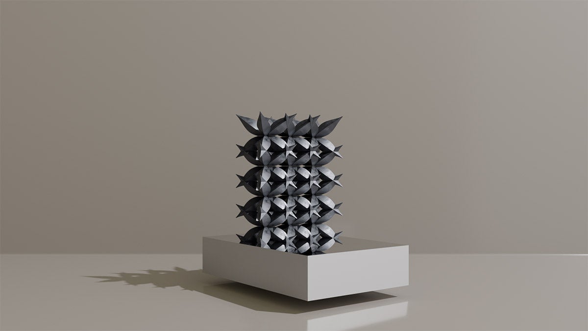 平面的な文様を紐解き、立体的な文様としてにプログラムにより生成されたデザインです。3Dプリンターによる造形技術を組み合わせて、これまでにない装飾の可能性を示します。