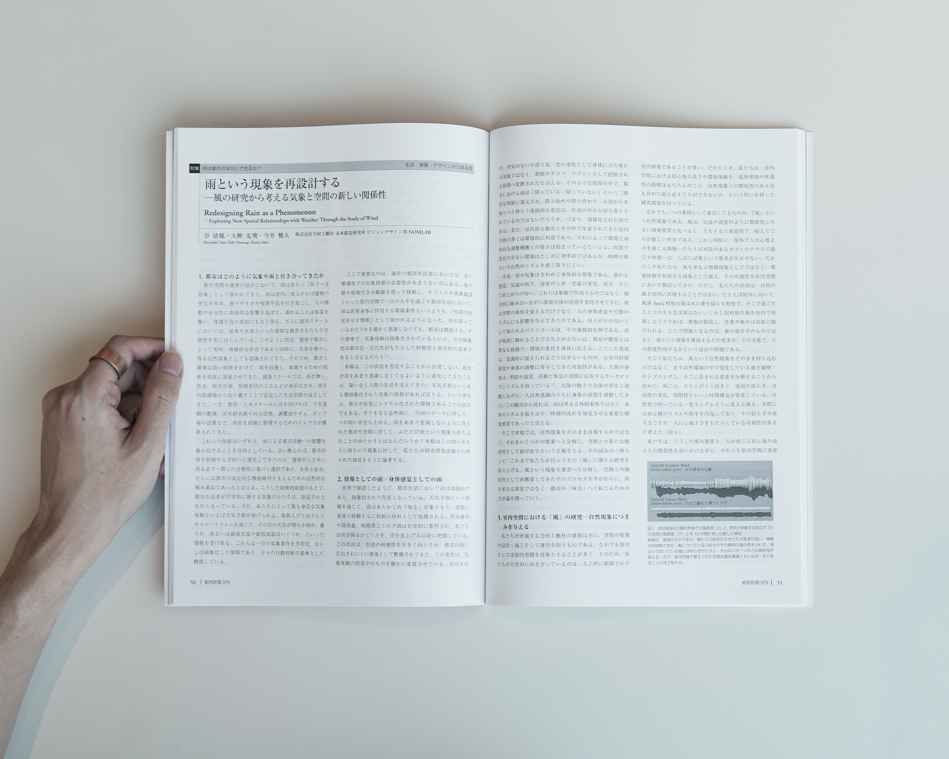 その中で、現象チームは「雨という現象を再設計する─風の研究から考える気象と空間の新しい関係性」という文章を寄せました。現在われわれが風という対象をベースに実践しているアプローチを踏まえた上で、それらを雨という対象においても、同じように取り扱うことはできるだろうか?という思考としてのプロトタイピングを、論文の中で行ったものです。関心がある方はぜひご一読をいただけたらと思います。