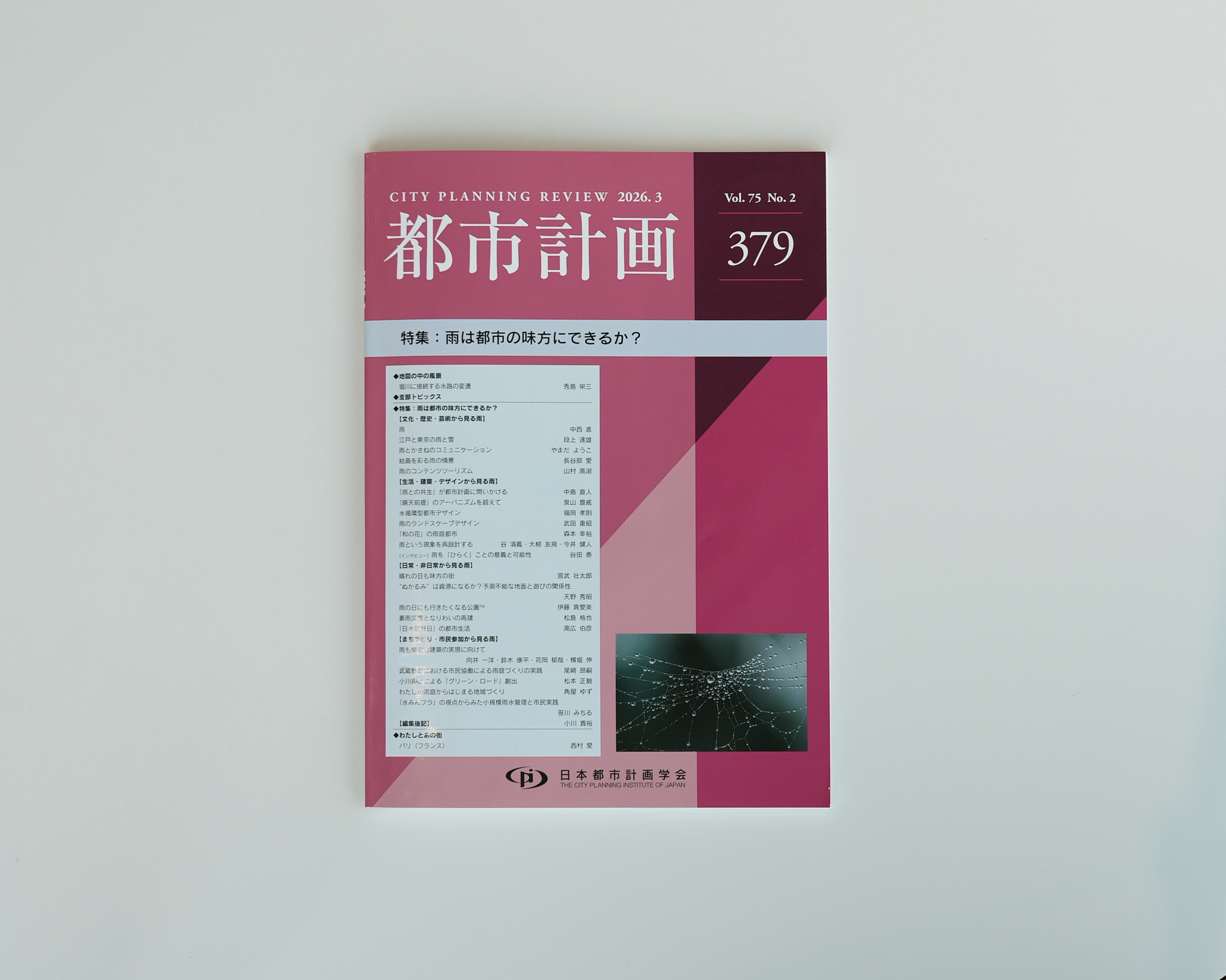 先日、現象チームで研究開発を行う傍らで、都市計画学会の学会誌『都市計画』へ論文を寄稿する機会をいただきました。テーマは「雨は都市の味方にできるか?」というものです。